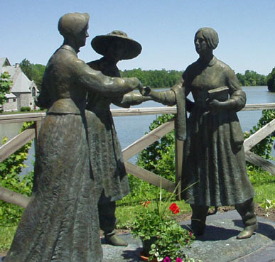 Bronze statue of the May 1851 introduction of Susan B. Anthony to Elizabeth Cady Stanton, Seneca Falls, New York